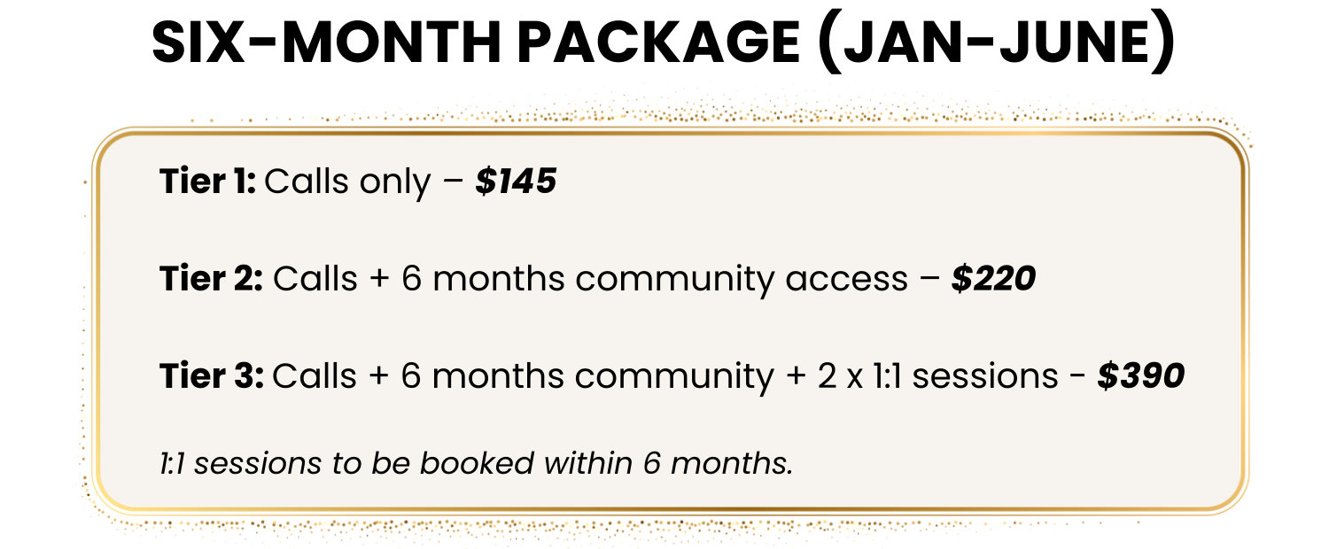 Or, if you sense you’re ready for a deeper journey, join the full six-month series and receive your first call and first month of community access free with all tier options. More details below.