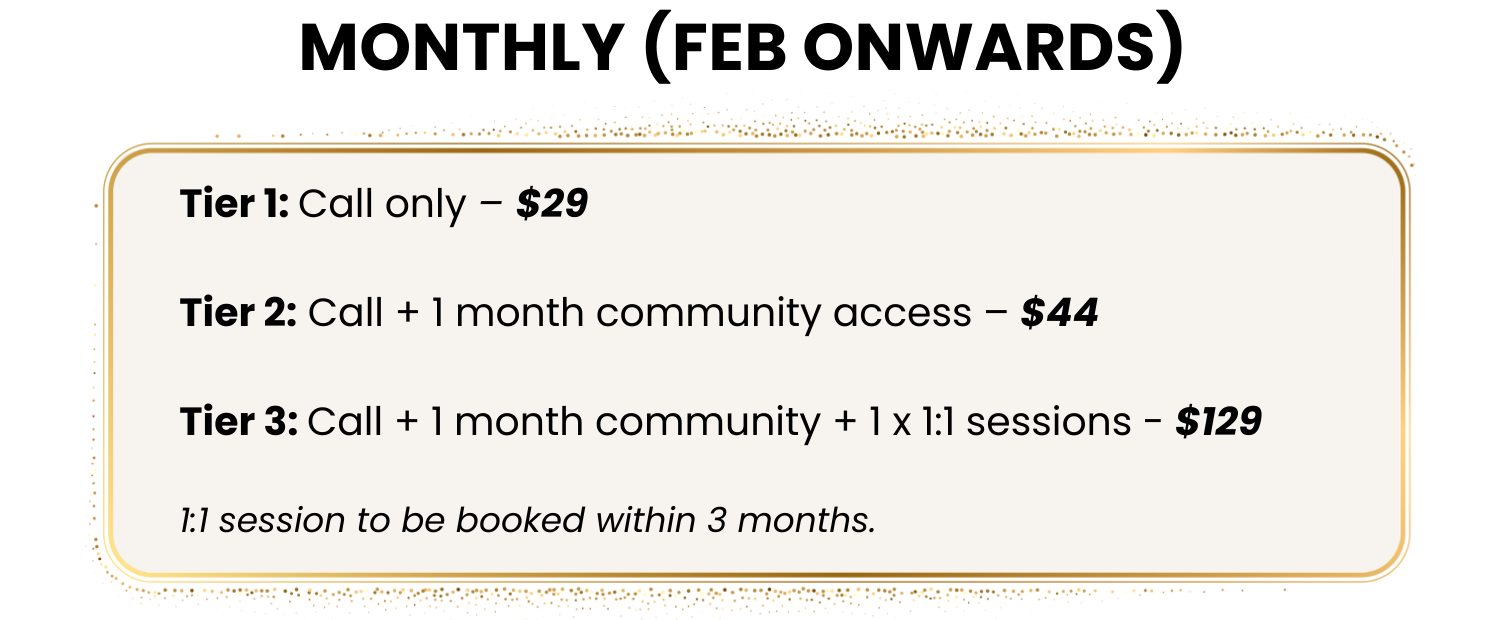 Access to each month’s call recording to revisit the attunement or catch up if you miss a live session.